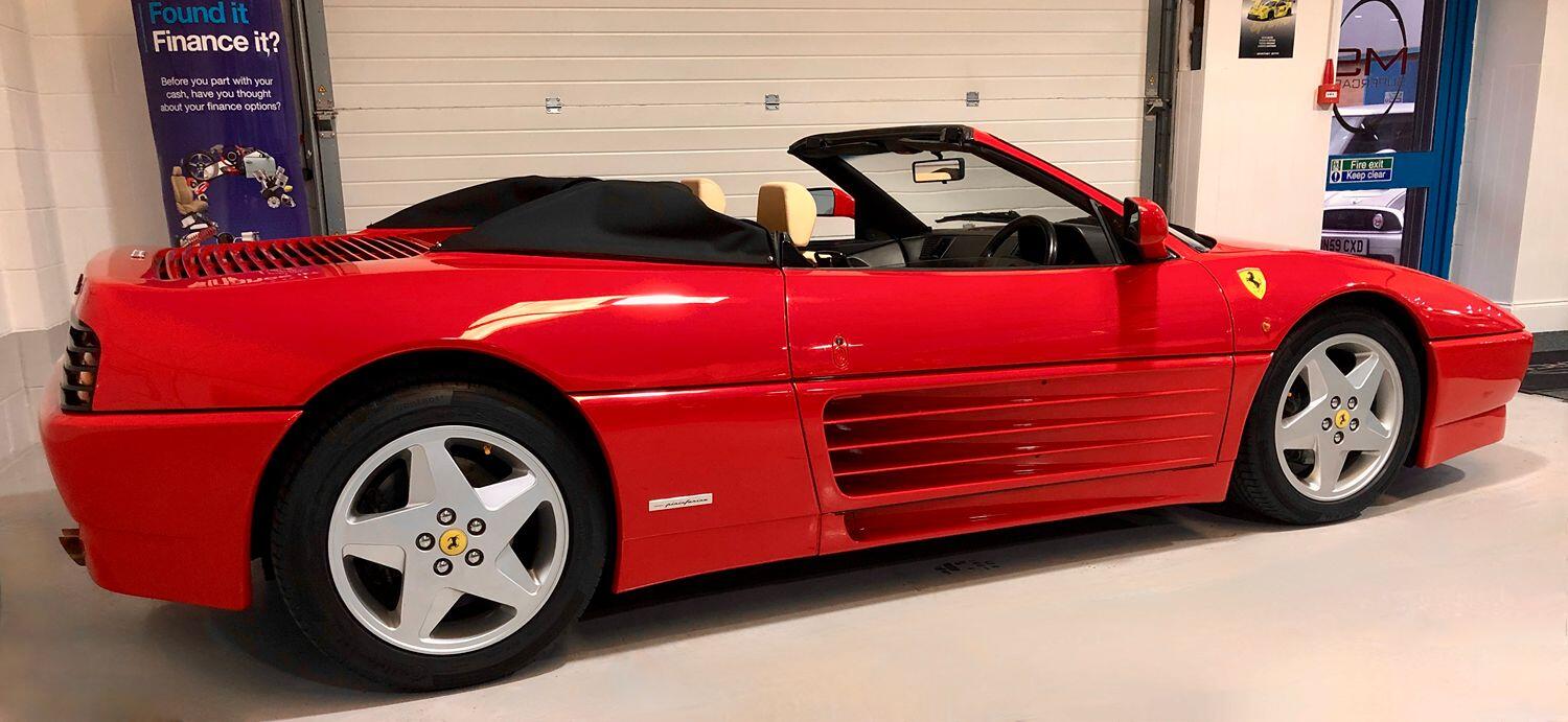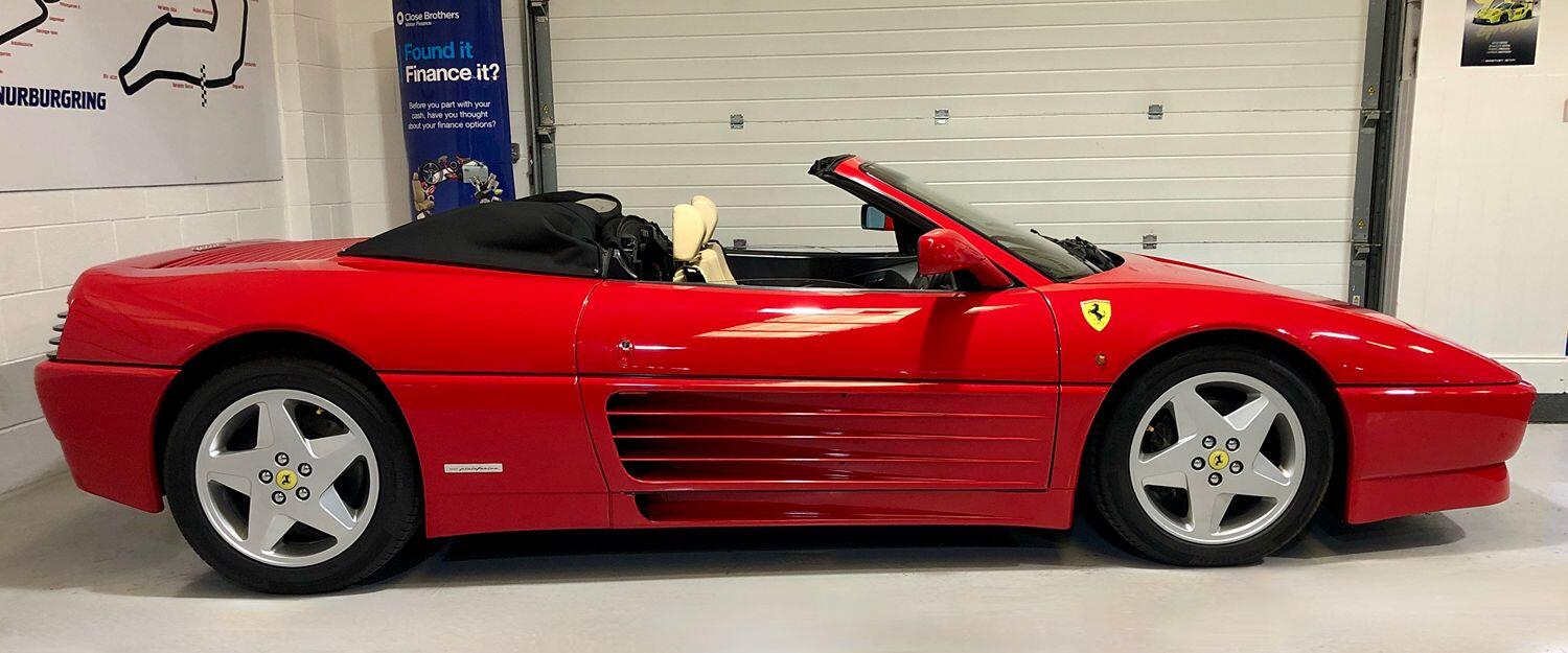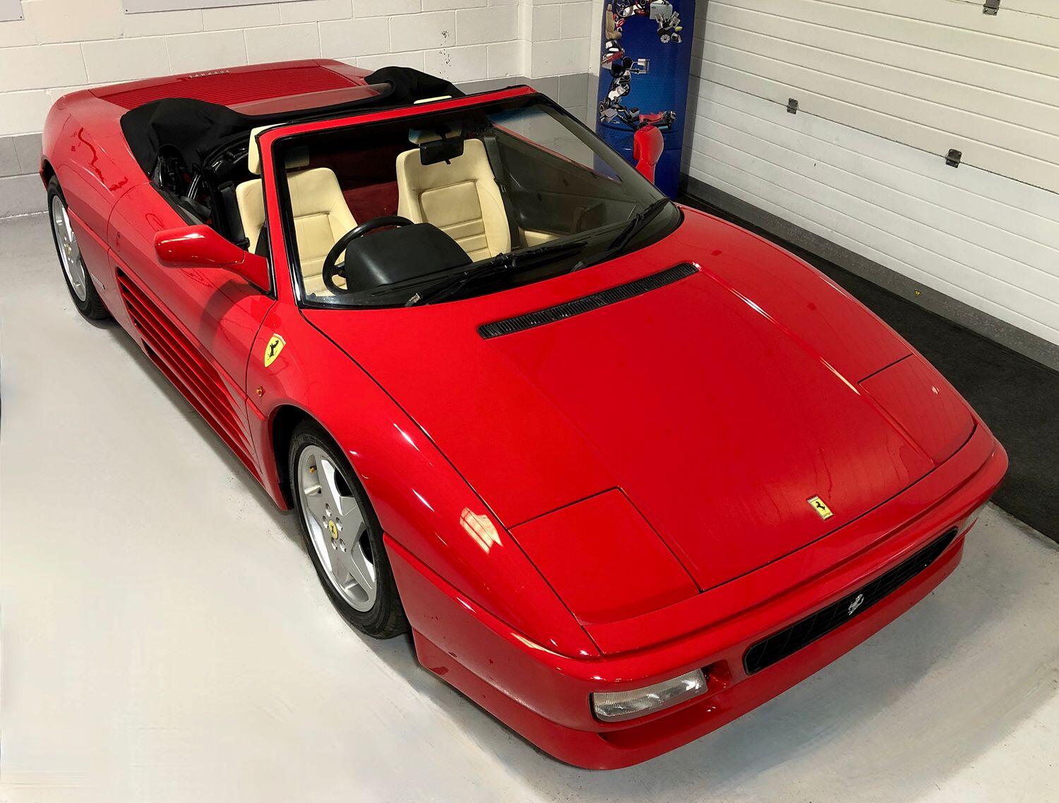 1994/L Manual. 42661miles. Here at MS Supercars we are extremely excited to offer this absolutely stunning Ferrari 348 Spider. This amazing example is finished in Rosso Corsa and is complemented with Cream Leather and Black hood. The car has the usual Ferrari extras such as 17 INCH ALLOY WHEELS WITH YELLOW FERRARI CENTRE CAPS, POP-UP LIGHTS, CHALLENGE REAR GRILLE, AIR-CON, DIGITAL CLOCK, HEATED DOOR MIRRORS, FRONT FOG LIGHTS, 3 SPOKE STEERING WHEEL, TAILORED CARPET IN RED WITH CREAM PIPING, ELECTRIC WINDOWS, ELECTRIC HEATED DOOR MIRRORS, POLISHED GEAR KNOB and REMOTE CENTRAL LOCKING. This car has a huge amount of paperwork including an incredible 27 services all carried out by Ferrari and Ferrari Specialist with the last service at 42467 miles just 194 miles ago. This really is a stunning example in exceptional condition with the last keeper owning the car since July 2012 and servicing it every year including correct belt changes etc. These cars are getting very rare with just a few on the market for sale. All part exchanges will be considered against this car so please do not hesitate to get ion touch. Telephone 01522 688867 / 07770 932592